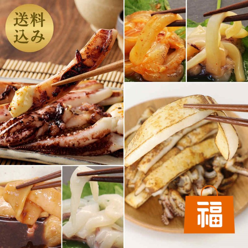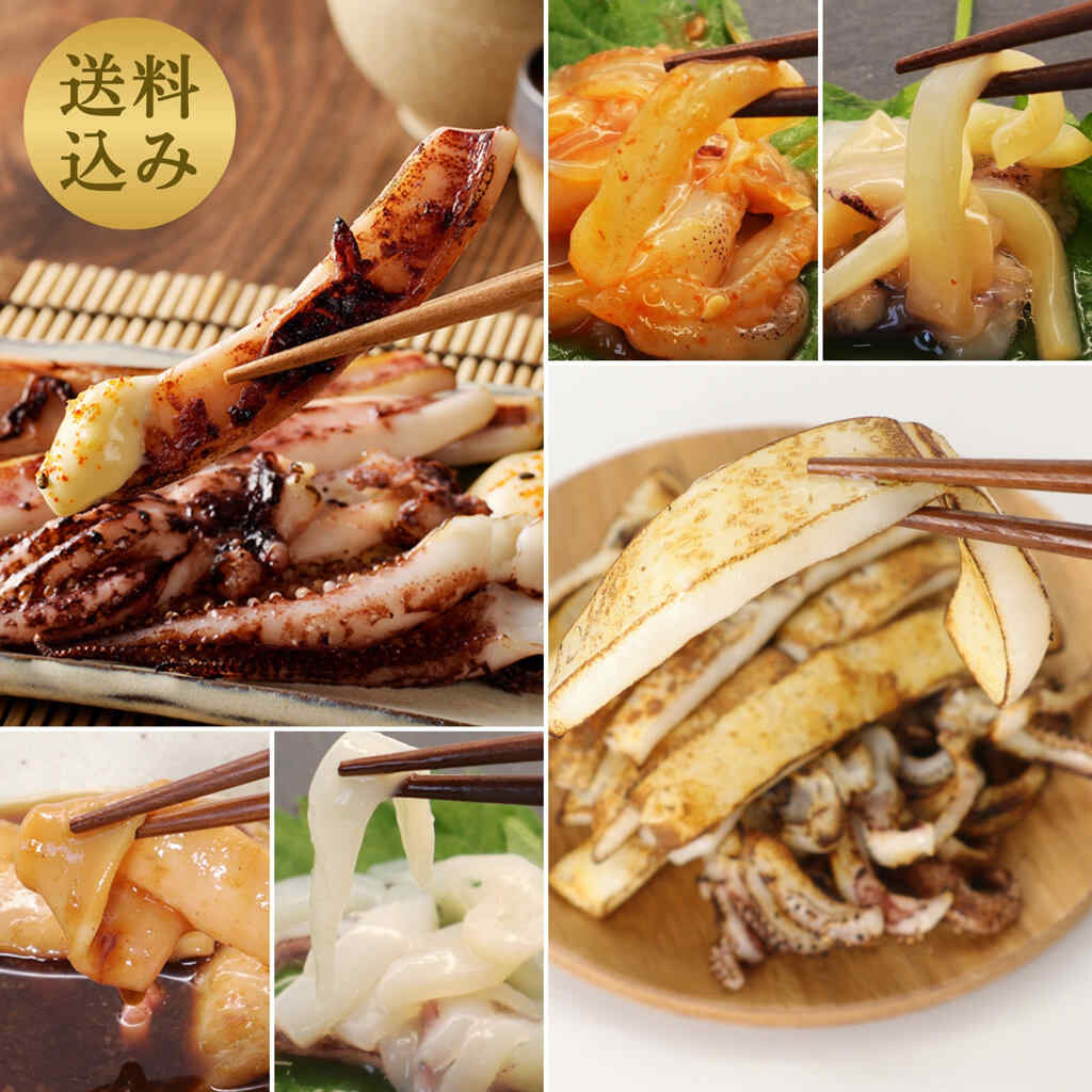 スルメイカ一夜干しカット済 200g×1袋 ケンサキイカ開き 70~100g×1枚 イカ加工品カンジャン 60g×1袋 イカ加工品チャンジャ 60g×1袋 イカ加工品塩だれゆず 60g×1袋 ケンサキイカ生姜醤油煮 68g×1袋 ケンサキイカ一夜干しカット済 200g×1袋 |